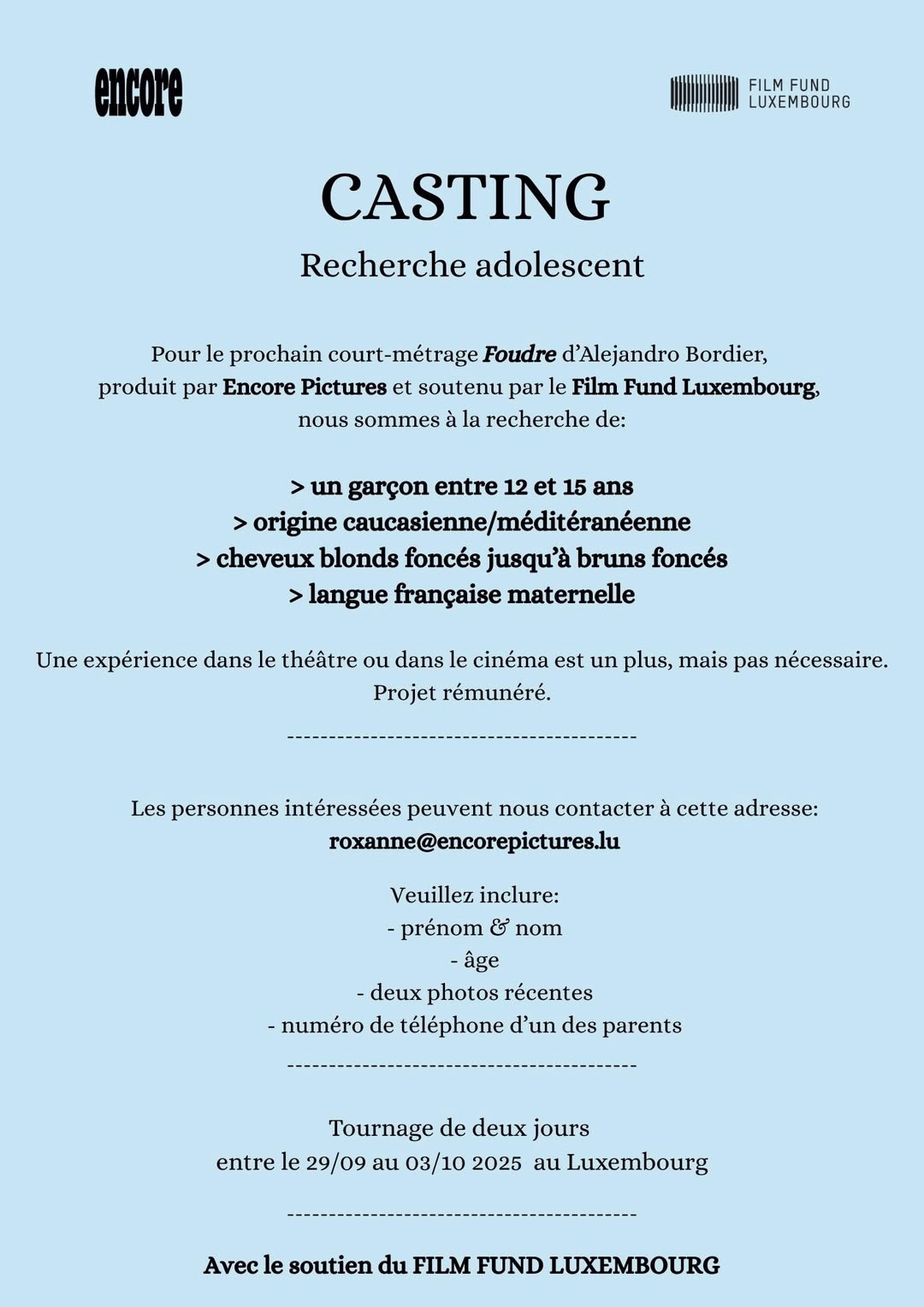 Dans le cadre du tournage d'une publicité pour une banque Luxembourgeoise qui aura lieu à Bruxelles et à Luxembourg.... |